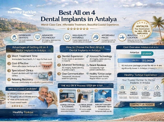 Best All on 4 dental implants in Antalya offer a combination of advanced clinical care, efficient treatment processes, and a comfortable patient experience. With its strong dental infrastructure and tourism-friendly environment, Antalya continues to be one of the leading destinations for full mouth restoration.